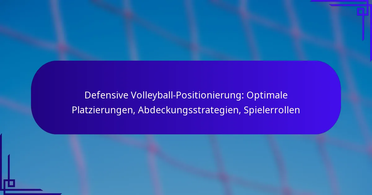 Die defensive Volleyball-Positionierung ist entscheidend, um die Court-Abdeckung zu maximieren und sicherzustellen, dass die Spieler schnell auf Angriffe der Gegner reagieren können. Durch das Verständnis optimaler Platzierungen und die Umsetzung effektiver Abdeckungsstrategien können Teams ihre defensiven Fähigkeiten verbessern und eine kohäsive Einheit bilden. Die jeweilige Rolle jedes Spielers spielt eine wesentliche Rolle dabei, Bewegungen vorherzusehen und eine erfolgreiche Verteidigung während der Spiele auszuführen.