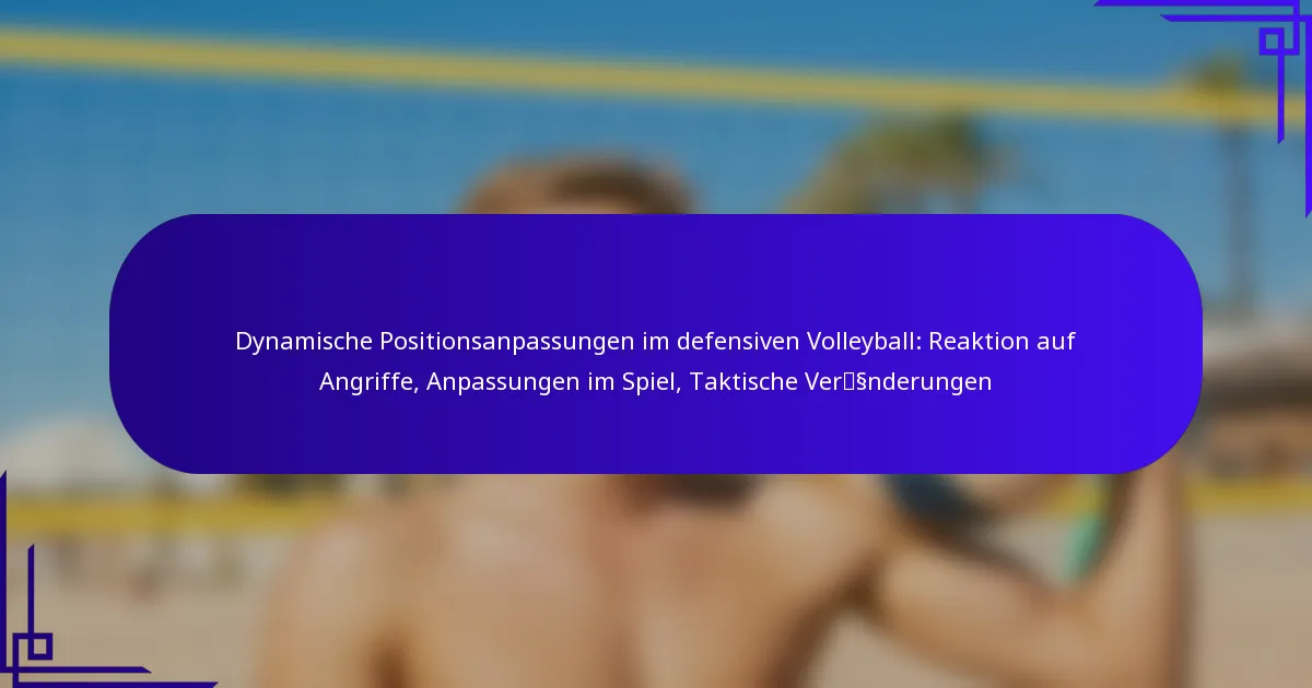 Dynamische Positionsanpassungen im defensiven Volleyball beziehen sich auf die Echtzeitänderungen, die Spieler in ihrer Positionierung vornehmen, um effektiv auf Angriffe von Gegnern zu reagieren. Diese Anpassungen sind entscheidend, um die defensiven Fähigkeiten zu verbessern und sicherzustellen, dass das Team verschiedene offensive Strategien effizient kontern kann.